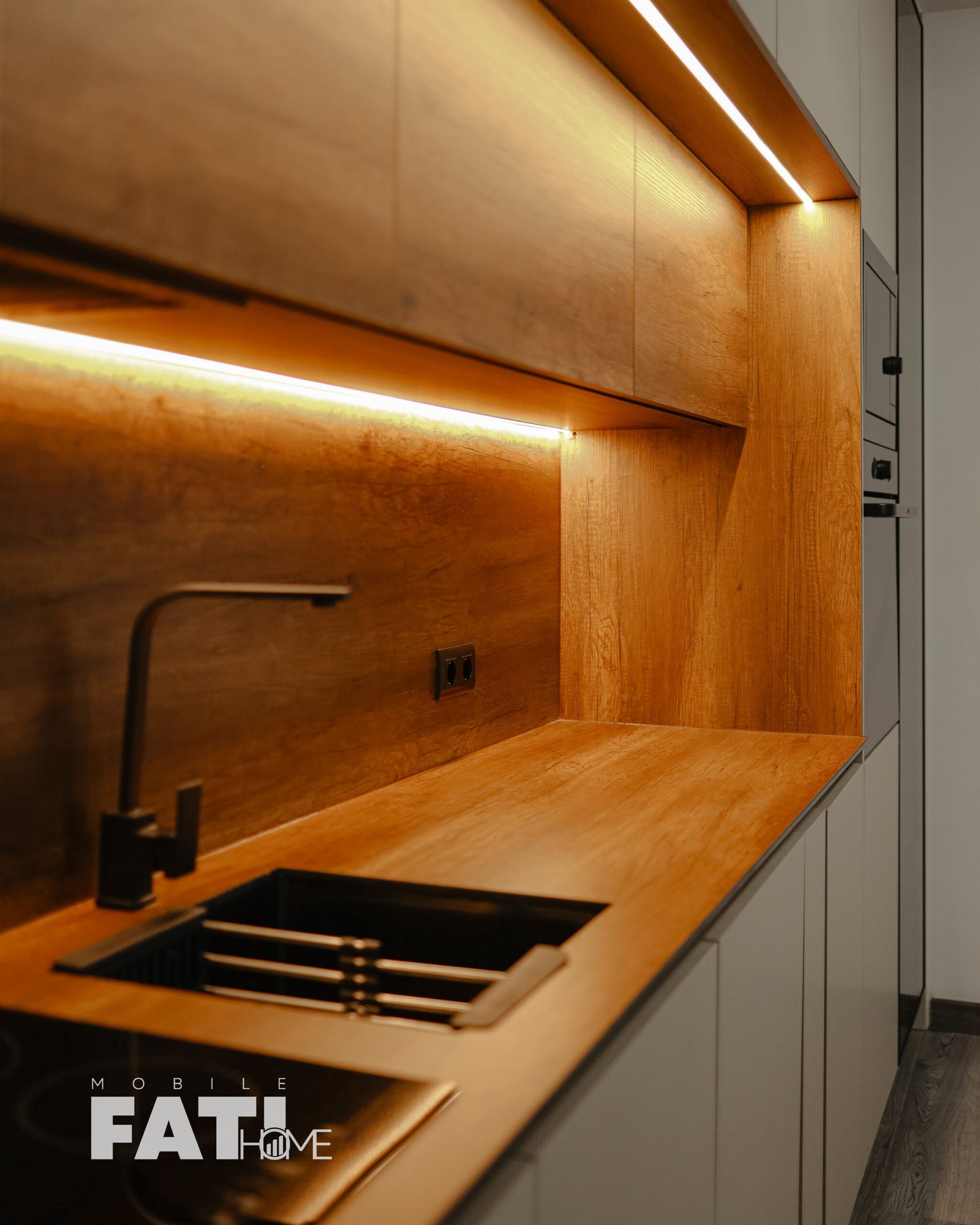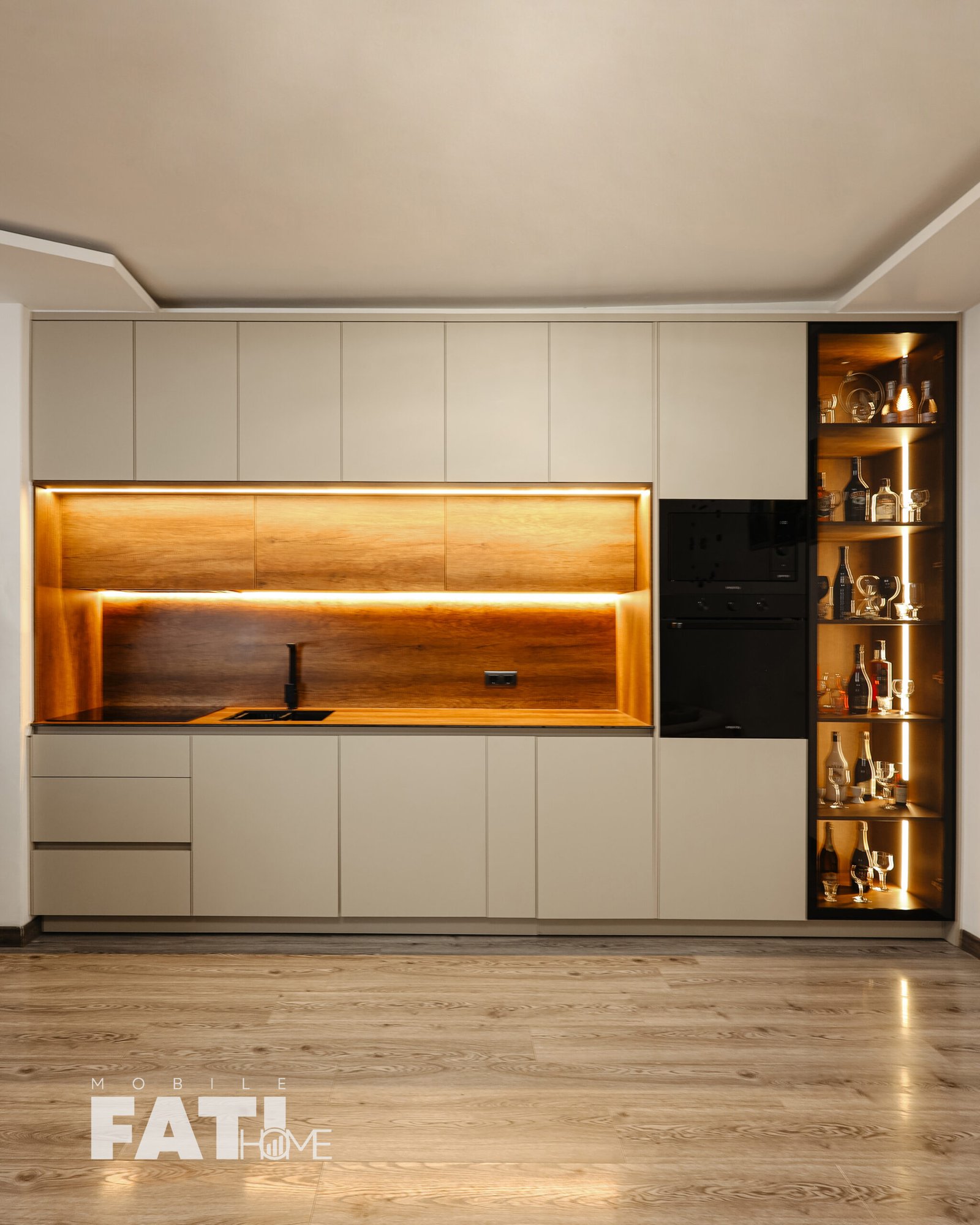 Kuzhina “Nova” përfaqëson harmoninë e përkryer midis dizajnit modern dhe ngrohtësisë natyrore. Me fronte të pastra pa doreza, ndriçim LED të integruar dhe tekstura druri që theksojnë finesën e hapësirës, kjo kuzhinë është krijuar për njerëzit që kërkojnë stil dhe funksionalitet në çdo detaj.